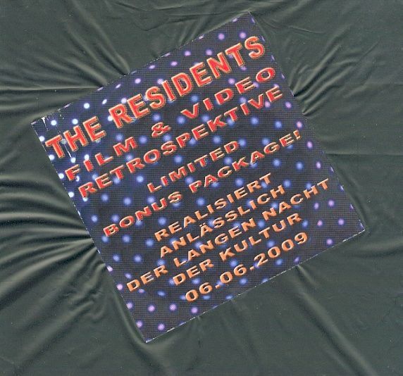 Limited hand-numbered edition of 300 copies. Original package produced for "The Residents Film & Video Retrospective" in Bremerhaven, Germany - Museum For Modern And Contemporary Art - 6.6.2009. Curated by Andreas Mathews.